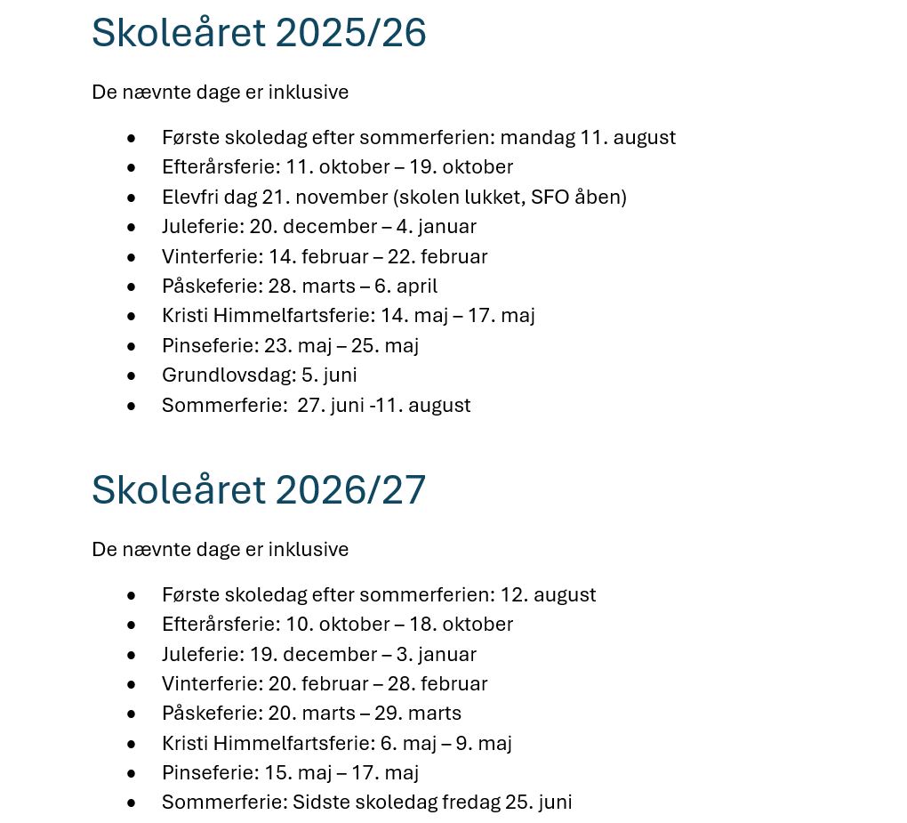 Skolens mødetider er følgende: